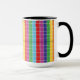 This ceramic mug features a vibrant geometric pattern inspired by modern abstract art, bringing a bold and cheerful touch to your morning coffee or tea. The colorful rainbow grid design stands out beautifully, making it a stylish and functional addition to any kitchen or workspace.