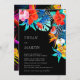 Modern Colorful Black Tropical Blommigt Bröllop Inbjudningar