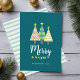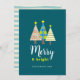 Skicka glatta helgdag önskemål med det här moderna julkortet med tre vita Julgranar fyllda med ljusa gulter på djup tealbakgrund. Varje träd har en unik design - återgeometrisk utskrift, färgstark polka dots och vintage lakan-musik - som skapar ett sunt utseende och contemporary. "Merry & Bright" visas i lekfull vit- och gult-typografi, med plats för din familj namn och år. Perfekt för att sprida fräckhet till vänner och närstående i stil.