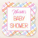 Announce your celebration with this modern colorful plaid baby shower paper coaster. Featuring intersecting pastel stripes in pink, coral, blue, green, and yellow, this cheerful plaid pattern offers a fresh, contemporary look that feels playful yet polished. The crisp white center panel keeps the layout clean and easy to read while allowing the colorful border to stand out.