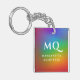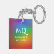 Bär stil överallt med vår moderna färgstarka regnbåge, vita Initialer-nyckelkedja! Med en fetstilt regnbågstig bakgrund skiner personligens monogram/initialer och fullt i skarp vit typografi. Den här chicen, snyggten och trendiget gör perfekten till födelsedagar, speciella tillfällen eller bara för att skapa din egen nyckelkedja för personlig. En modern och färglös beröring som du kommer att ge dig själv till kärlek eller överraska någon speciell.