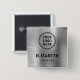 Modern namn bricka-knapp med ditt företags eller organisationens logotyp mot en borstad silver-fack av metall. Lägg till en namn och titel i enkel typografi.