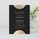 Ett modernt mönster för svart och guld-halvcirkel abstrakt bröllop. Den här contemporaryn är perfekt för alla årstider vid Vår, sommar, höst och vinterbröllop. En snyggt-guld-folie ser ut som ett trendig svart och guld. Ett klassens bröllop spara datum-design med modernt inslag. Det finns även alternativ för matchning av bröllop-kontorsartiklar och andra bröllopsinbjudningsformat.