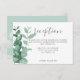 Kort för mottagning av elegant och contemporary bröllopskort med vacker vattenfärg eukalyptus löv på ena sidan över en vit bakgrund. Lägg enkelt till mottagningsinformation, anvisningar eller annan information. Kortets baksida är anpassade med namn, bröllop-datum och valfri infotext (redigera eller ta bort exempeltexten).