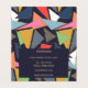 Denna moderna contemporary, medelhundradets geometriska, färgstarka Mönster, har en samling av olika triangelformer, missriktade geometriska, minimalistiska elegant guld-penseldrag, blått, grått, vitt, rött, rosa, gult, brun, grönt och vitt vibrerande färg, på en enkel kvällsblå bakgrund. En snyggt, Fashionable Original Art, Vintage Design, som passar perfekt för alla tillfälle, vardagliga bäror eller hemdekorationer. Kreativ, minimal konst, bildutskrift.