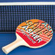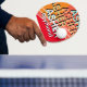 Kreativ bord-tennis-paddle-personlig med namn och efternamn i olika färg (sans serif font) med lagrar, över en röd och geometrisk bakgrund... en modern visuell identitet för snyggt spelare.