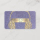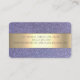 Elegant snyggt affärskort med guld glitter-hörlurar på violett glitter-bakgrund.