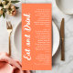 Modern Coral Orange Eat and Drink Wedding Meny