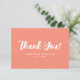 The Modern Coral Pink Elegant Script Wedding Thank You Card features a soft coral pink background with graceful white script typography. The design is clean, modern, and refined, making it a perfect way to express appreciation after your wedding day.