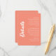 The Modern Coral Pink Wedding Details Enclosure Card features a clean and minimalist design with a soft coral pink background. The layout is simple and well organized, making it easy for guests to read important wedding information.