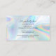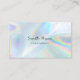 Affärskort av ljus och glatt faux holografisk bakgrund för både småföretagare och stora organisationer. Utformningen har en modern, skript, typografi, trendig typsnitt och enkel men effektbaserad bakgrund. Perfekt för en skönhetare eller skönhetsalonägare, makeup artist, kostummaker, hårstilist eller kosmetolog. Lägg bara till logotyp, namn och affärsinformation till det här smarta och moderna kortet genom att klicka på knappen "Anpassa". OBS! Holografiinformationen simuleras i teckningen. Det finns inga faktiska holografiska skuggeffekter vid utskrift.