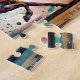 Denna moderna abstrakta utformning har en cowboyridare som rider sin häst i ett virrvarr av färg.
