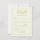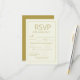 Modern kräm- och guld-bröllop OSA-kort formaterad lodrätt. Det här kortet är designat för att du ska kunna svara med antalet deltagare och deras val av två kurser och en dessert. Kontakta oss om du behöver hjälp med att anpassa eller matcha produkter.