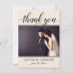 Modern och chic neutralt med grå, ljumt, vitt och svart, bröllop-flata tackkort har ett foto av bruden och trippen på framsidan och baksidan som accentueras med en snyggt svart typografisk design, inklusive fet calligraphy-skript och text i elegant som kan vara personlig med ett anpassningsbar tackmeddelande.