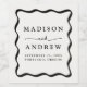 Lägg till en personlig till din bröllopsmottagning, förlovningsfest eller repetitionsmiddag med anpassningsbarna Modern Cream och Black Vågigt Ram vin. Utformningen visningar namn, bröllop-datum och bröllop i fet svart text omgiven av en svart vågigt gräns som kontrasterar mot en ljusgräddbakgrund. Etiketterna från vin samordnar sig med vår moderna Vågigt Ram bröllop.