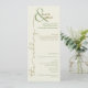 Det här eleganten minimalistiska moderna bröllopsprogrammet innehåller alla detaljer som dina gäster behöver för att fira ceremonin i bröllop. Bekvämt designad med ett slående ampersand-monogram och fantastisk typografi. Olivskugga och grönt på gräddvit bakgrund är tidlösa och organiska. Lägg till den här vackra detaljen till din sofistikerade och snyggt bröllop. På framsidan finns plats och datum för bröllop, ett välkomstmeddelande om tack till dina gäster och detaljer om Ceremony. I baksidan visas bröllopsfestens roller och namn. Perfekt för par som vill ha ett modernt men tidlöst bröllopsprogram. Den här designen blandar contemporary stil sömlöst med klassisk elegans. Alla färg kan anpassas i Design Verktyg