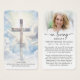 This modern memorial prayer card features a radiant cross set against a peaceful sky and the editable comforting Bible verse from Matthew 11:28, “Come to me, all you who labor and are burdened, and I will give you rest.” on one side. The other side features your loved one's photo, a modern “In Loving Memory” script design with name and dates and an editable heartfelt remembrance message you can change to a prayer, bible verse or poem. Ideal for funeral services, memorial gatherings or celebration of life ceremonies, this small 3.5x2" keepsake card offers comfort, reflection and remembrance for family and friends to carry as a reminder of their life and spirit. Personalization makes these cards unique.