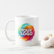 Modern Custom Business Logo Branded Coffee Mug featuring two-sided coffee mug branded with your professional business logo design ready to be personalized. Easy-to-use template for you to add your company logo to the colorful placeholder image space. ©Marisu Valencia