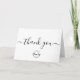 Personalize this simple and easy to use thank you folded card template with your company's logo, message, name, and social media handles. Let your clients, customers, patrons know you are grateful for their support during these uncertain times. Featuring a printed modern customizable text "thank you" script with long-tailed embellishments on white.