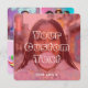 Create a stylish personalized greetings card using five of your favorite photos. It's a fun way to creatively display your pictures! The front of the card features a semi-opaque photo over a colored background, with trendy typography you can customize with your own text or slang. You can adjust the photo's opacity and the background color with the design tool. The back of the card showcases four photos in a simple grid with rounded squares. This modern, retro style is perfect for kids, teenagers, friends and family. It's an adaptable template, ideal for Christmas, holidays, birthdays, and other special occasions. Colors: white text, red background. Available as a printed card or a digital download.
