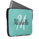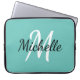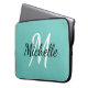 Den moderna bärbara datorn fodral med ljusblå bakgrund och vit anpassningsbar i monogram första gången och första namn.
