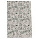 This Father's Day gift bag features a hand-drawn-style doodle pattern of the things dads actually love — vinyl turntables, BBQ smokers, pour-over coffee gear, headphones, and wristwatches — scattered across a warm cream background in deep forest green ink, with "Happy Father's Day" ribbon banners throughout.