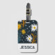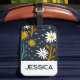 Modern Daisies Pattern on Dark Blue Personalised Bagagebricka