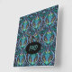 Modern Damask Art Deco Black Turcos Blue Namn Fyrkantig Klocka