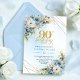 Modern Damblå Blommig Guld 90-årsdagskort Inbjudningar