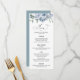 modern blommigt- och skriptutformning med dammiga blåfärgade blommor bröllop-menykort