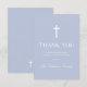 Enkel och modern dop tack-kort med en dammig blå bakgrund och vit korsdesign. Perfekt för att dela tacksamhet efter din speciella dag. Personalisera enkelt med ditt eget meddelande.