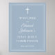Modern dammig blå första kommunion välkomstskylt poster