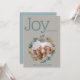 Trendiga nyanser av dammig blå och guld filodendronblad runt en rund fotolampa med svampgrå bakgrund. Glädje åt världen i modernt teckensnitt (som du kan ändra om du vill). Lätt att anpassa - baksidan är en andra plats för ett favoritfoto, perfekt för dina vänner och familj att rama in!