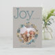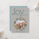 Trendiga nyanser av dammig blå och guld filodendronblad som omger en rund fotoram med svampgrå bakgrund. Joy to the World i modernt teckensnitt (som du kan ändra om du vill). Lätt att anpassa - baksidan är en andra plats för ett favoritfoto, perfekt för dina vänner och familj att rama in!