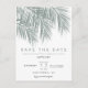 Modern dammig blå palmer elegant spara datum. Modern enkel falsk guld palm med enkel typografi, ett trendigt och tropiskt tema för att spara datum för bröllop på palmblad.