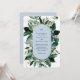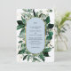 Modern båge, dammig blå botanisk grönska trädgård bröllop inbjudan. Vattenfärg Botaniska blad, trädgård tema elegant bröllops inbjudan.