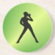 Vacker grön bakgrund med en kvinnlig dansare som tippar sin hatt. En mjuk skon tapdansare.