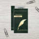 Modern Dark Emerald Green Gold Quill Notary Public Visitkort