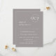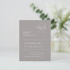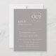 Det här mjuka varma grått-kortet för det moderna bröllopsbesöket ger gästens svarsinfo och val av måltid i stor, ren linje, vit typografi och en unik detalj med R.S.V.P. före datum i en chic sälslayout i stil. Del av Modern Date Seal-inbjudan.