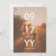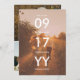 Dubblan sparar datumkortet med en modern, ren typografisk design som är fokuserad på bröllop-datumet på ett foto av paret lycklig. Lägg till ytterligare tre foton på baksidan i en ren kollage. Rensa personligen för datummallskortet med foton.