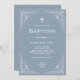 Modern Deco | Elegant Dusty Blue and White Baptism Inbjudningar