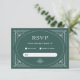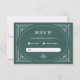Dessa glamorösa svarskort för bröllop OSA i helgdag har en modern centrifugering på klassisk konsthandling. Ett ornat, lätt silver/vitt färgad geometriskt ram och prydnadation dekorerar en elegantens grönt i julen för ett dramatiskt utseende i vintage bröllop.