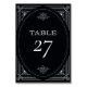 Dessa glamorösa bordsnummer i bröllop har en modern centrifugering på klassisk konsthandling. Ett ornat, vitt geometriskt ram och ornamentering dekorerar en elegantens mörk onyx svart bakgrund för ett dramatiskt utseende i vintage bröllop.