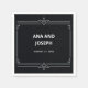 Dessa glamorösa bröllop-blöjor har en modern centrifugering på klassisk konsthugga. Ett ornat, vitt geometriskt ram och ornamentering dekorerar en elegantens mörk onyx svart bakgrund för ett dramatiskt utseende i vintage bröllop.