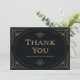 Det glamorösa tack du har på kortet är en modern centrifugering på klassiskt konsthandling. Ett ornat, faux guld geometric ram och dekoration dekorerar en elegant mörk svart bakgrund för ett dramatiskt utseende, vintage bröllop. Baksidan är ett tomt elfenben färg så du kan skriva ditt eget budskap.