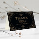 Det glamorösa tack du har på kortet är en modern centrifugering på klassiskt konsthandling. Ett ornat, faux guld geometric ram och dekoration dekorerar en elegant mörk svart bakgrund för ett dramatiskt utseende, vintage bröllop. Insidan av kortet är elfenben.
