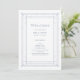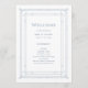 Det här glamorösa bröllopsprogrammet har en modern centrifugering på klassisk konsthandling. En ornerad, dammig blå geometrisk ram och dekoration dekorerar en elegant vit bakgrund för ett dramatiskt välkomstprogram för vintagen.