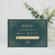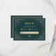 Dessa glamorösa svarskort för bröllop OSA har en modern centrifugering på klassisk konsthandling. Ett ornat, champagnegeometriskt ram och dekoration av färgaden dekorerar en elegant som ger grönt bakgrunden för ett dramatiskt utseende, vintage bröllop.