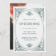 De glamorösa bröllopsinbjudningarna har en modern centrifugering på klassisk konsthandling. Ett ornat, proaktivt grönt, geometriskt ram och dekoration dekorerar en elegant med mycket lätt silver/vit bakgrund för ett dramatiskt, glamoröst och vintage 1920:s bröllop som ser ut som perfekt för din jul-helgdag. Ditt foto går på baksidan.