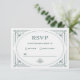 Dessa festive bröllop OSA Responcard-kort har en modern centrifugering på klassiskt konsthandtag. Ett ornat, gröntens geometriska ram och dekoration dekorerar elegantens ljusa silver/vita bakgrund för ett dramatiskt, årgång vid bröllopen.